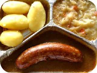 Rostbratwurst, Sauerkraut, Salzkartoffeln